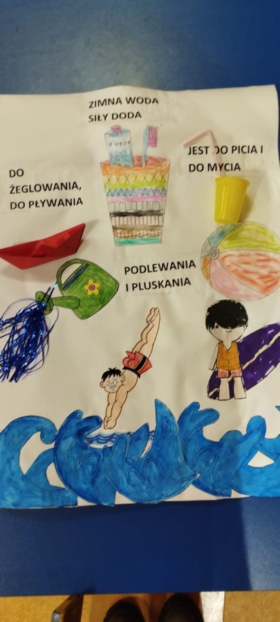 Dzieci z grupy Starszaki wykonały plakat " Zdrowa woda" w ramach cyklu zajęć " Daj nowa energię".