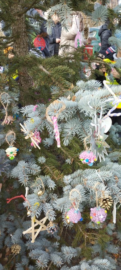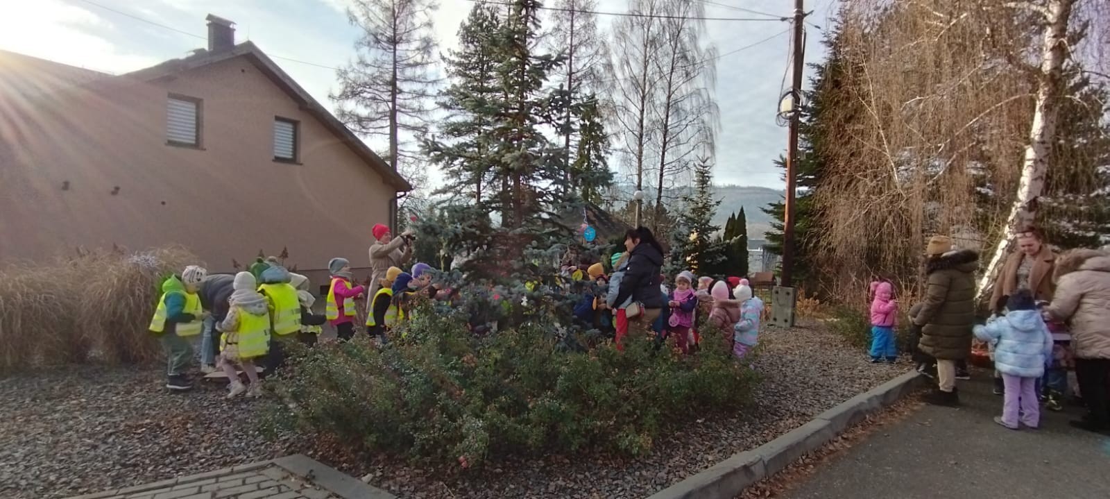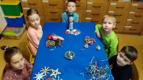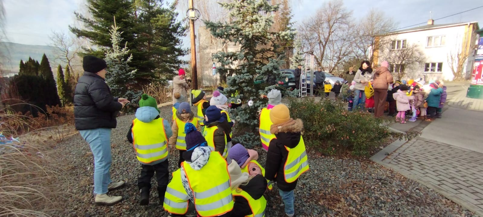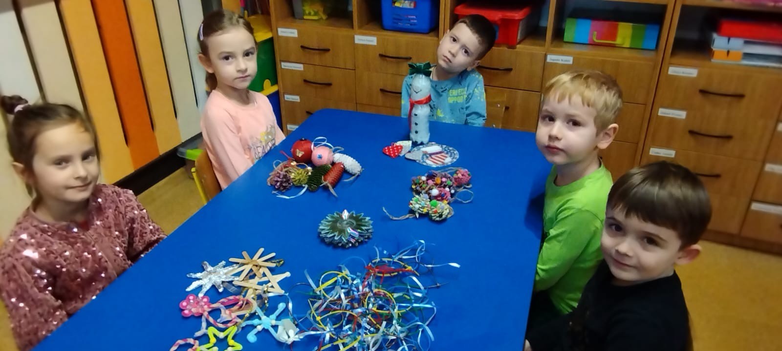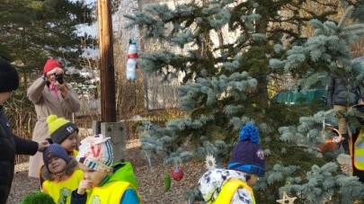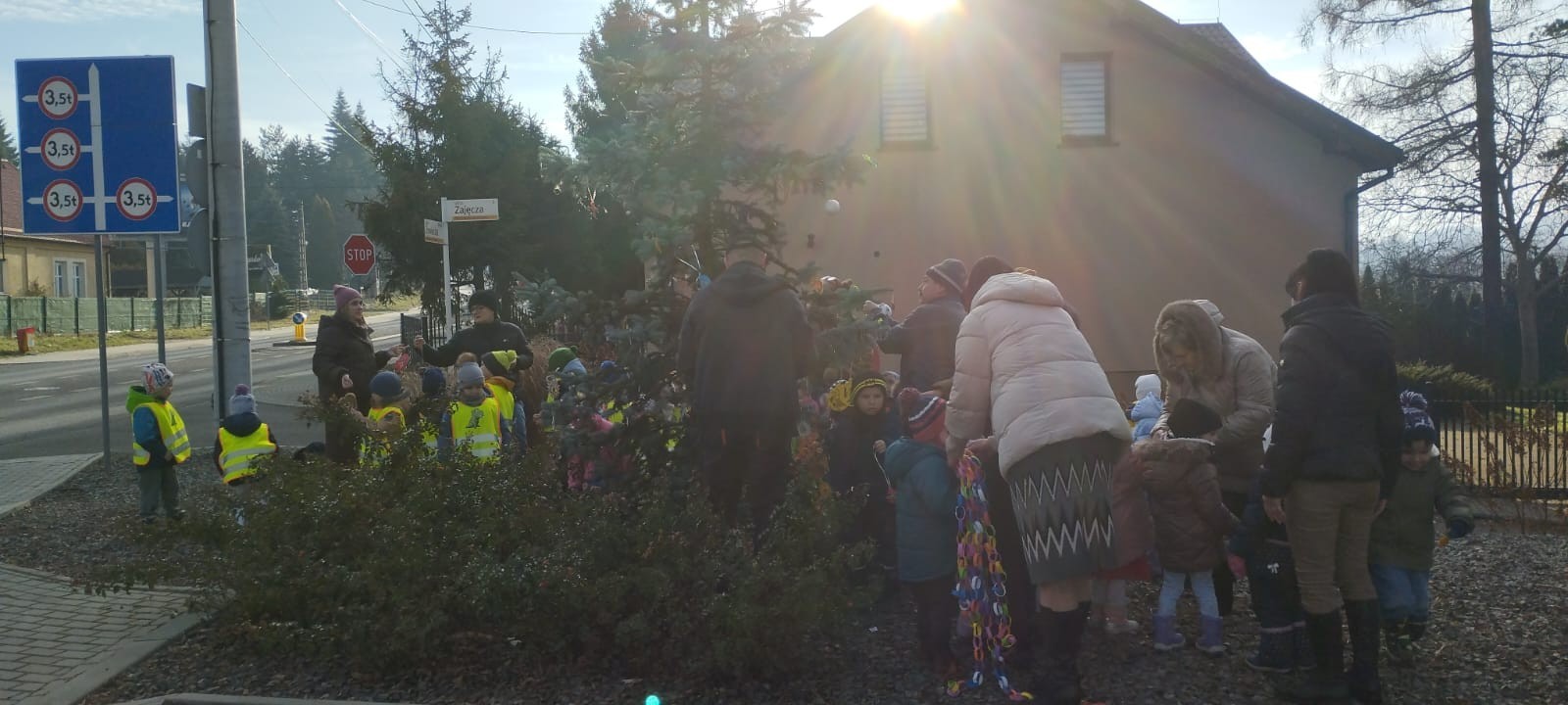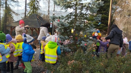 18 grudnia wszystkie dzieci z naszego Przedszkola wzięły udział we wspólnym ubieraniu choinki na skwerze przy Domu Kultury. Ozdoby wykonane były przez dzieci i ich rodziców z materiałów naturalnych i surowców wtórnych. Tym samym zrealizowaliśmy punkt drugi konkursu - działania kreatywne.
